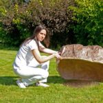 Base contact — the stone has a non-sealed base and rests directly on the ground surface. It is not hermetically sealed; natural micro air exchange between the interior cavity and the surrounding environment is possible through the ground contact zone.