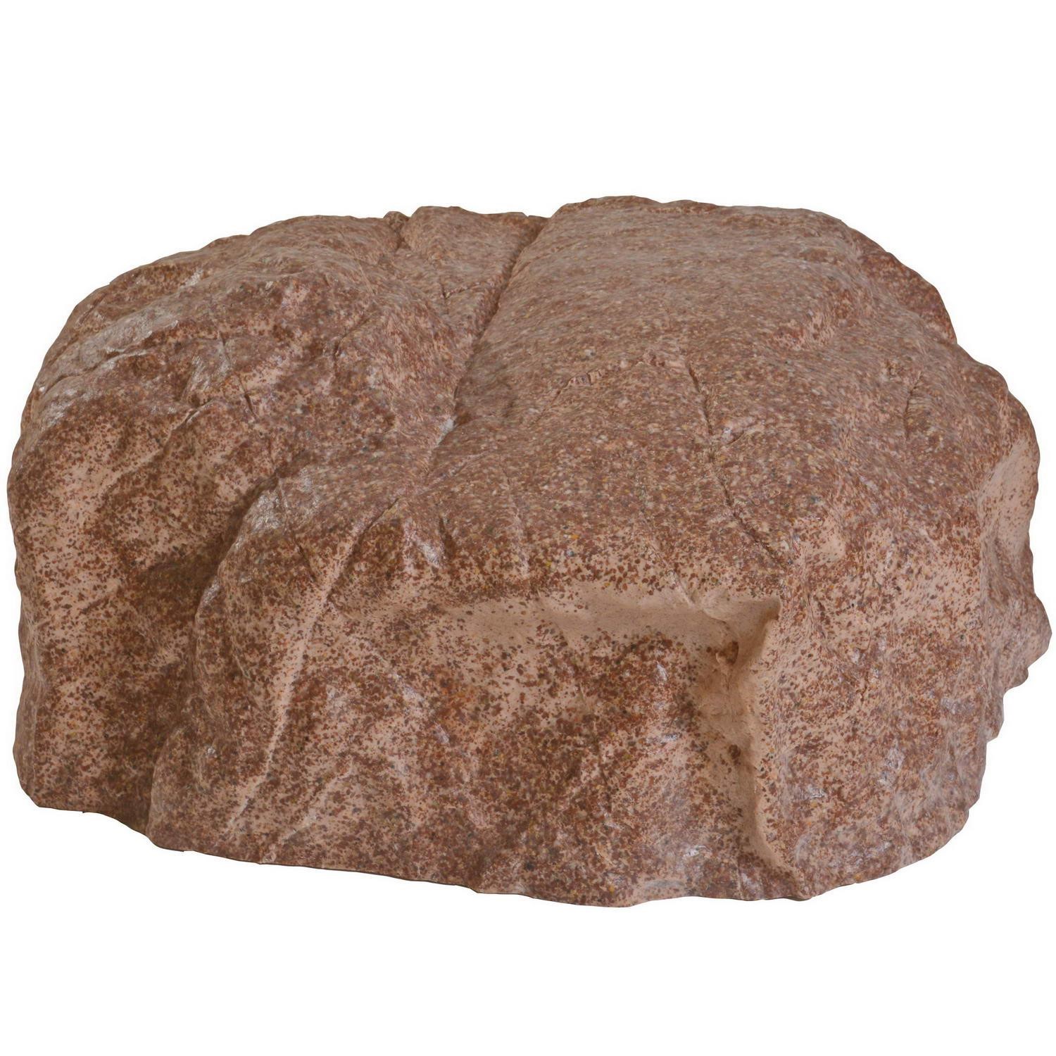 GARTENDEK M-03 is the maximum-coverage model in the M-series — a hollow artificial stone with the widest interior diameter of ø 80 cm, the tallest profile at 32 cm, and the most substantial weight at 15 kg. Shaped as a compact, near-square natural boulder (85 × 83 cm), it conceals the largest ground-level utility elements that no other M-series model can cover: oversized septic risers 70–80 cm, wide pool filter housings, multi-pump assemblies, massive concrete wellhead covers, and large manhole covers exceeding ø 73 cm.