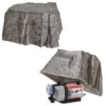 Traditional solutions fall short. Natural stone is visually ideal but weighs 200–350 kg, cannot be hollowed to shelter equipment, and costs €800–3,000+. Budget plastic covers are lightweight but their painted surfaces fade, crack, and chalk within two to three outdoor seasons.