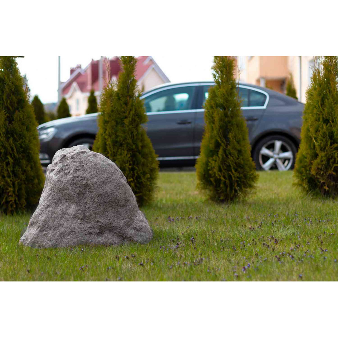 The GARTENDEK S-03 is a hollow artificial stone with a tall, dome-shaped profile — the highest and most voluminous model in the GARTENDEK S-series. Designed to resemble a large natural field boulder, it conceals medium-sized garden equipment — pumps, pond filters, septic risers, manhole covers, transformer housings, tall valve assemblies — while adding a substantial stone accent to the landscape.